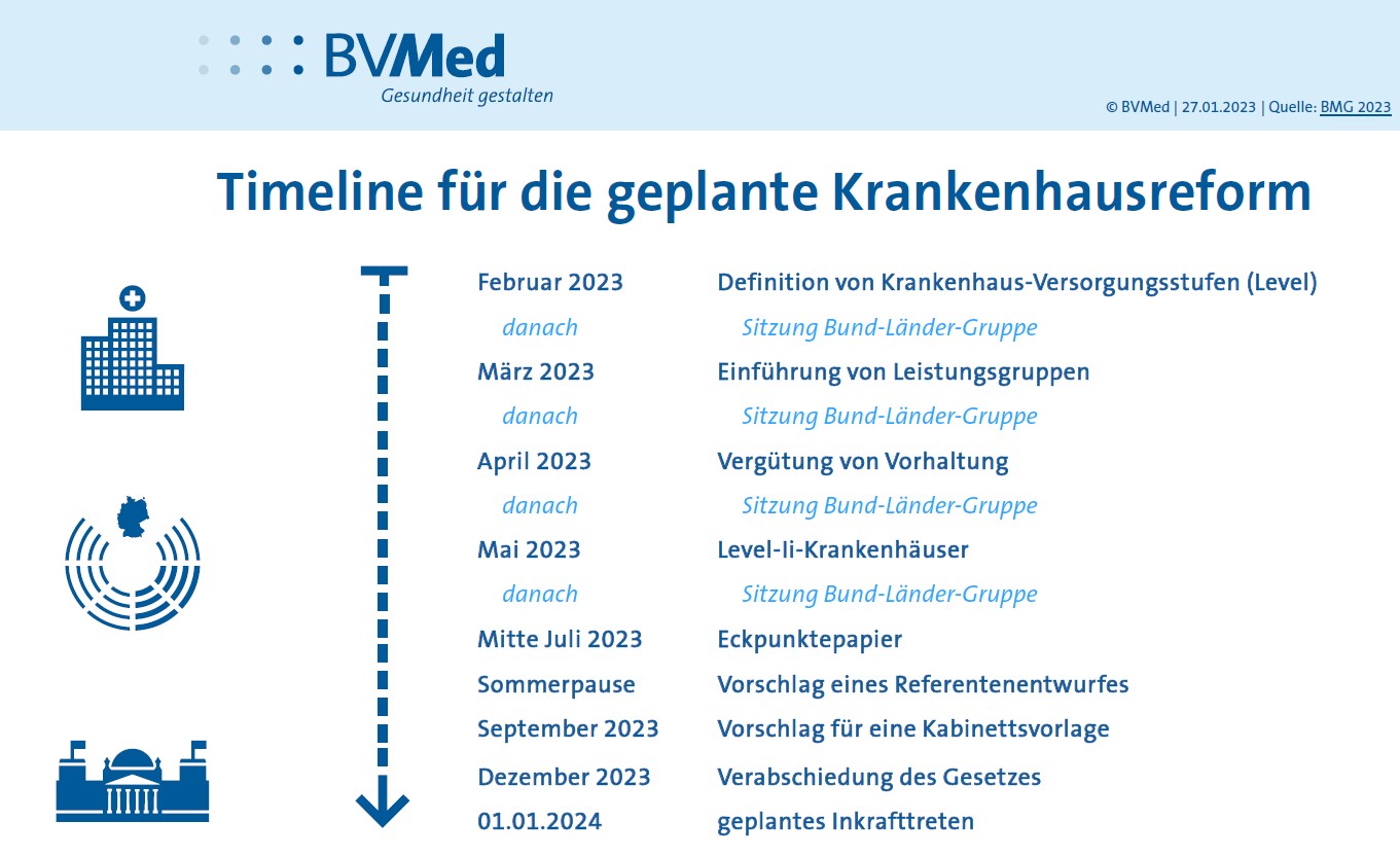 Link zur Timeline: https://www.bvmed.de/downloads-rostohar/timeline-fuer-die-geplante-krankenhausreform oder Kurzlink: https://tinyurl.com/4zarj7p6