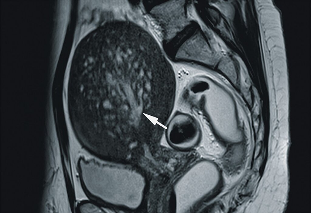 Bei komplexen Fragestellungen bzw. zum Ausschluss anderer Erkrankungen mit vergleichbarer Symptomatik stellt die MRT mit und ohne Distension von Vagina und Rektum ein weiteres zuverlässiges Instrument der Bildgebung dar, das Erfahrungen des Gynäkologen und des Radiologen voraussetzt [34], (Abb. 6).