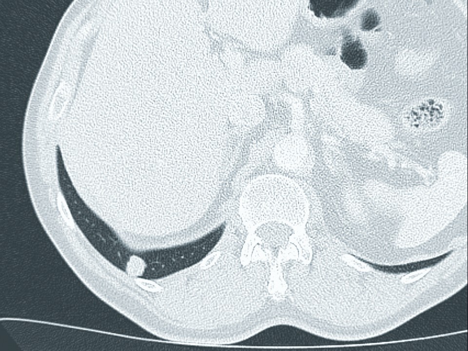 In der radiologischen Praxis wird – nach Überprüfung des Berichtes und der Teilnahmevoraussetzungen (z. B. kein Thorax-CT in den vergangenen 12 Monaten) – ein Untersuchungstermin zur Niedrigdosis-CT vergeben. Genaue Vorgaben für die Durchführung der Niedrigdosis-CT sind in der Lungenkrebs- Früherkennungs-Verordnung beschrieben [18]. So darf ein Volumen-Computertomographie-Dosisindex von 1,3 Milligray nicht oder nur im Einzelfall aufgrund der Körperstatur (z. B. bei Adipositas) überschritten werden. In der Verordnung zwingend vorgeschrieben ist die Verwendung von Software zur computerassistierten Detektion zur Unterstützung des Radiologen. Nach Beurteilung der CT-Bilder und Überprüfung auf Auffälligkeiten in einer ersten Sitzung durch den Erstbefunder erfolgt durch diesen eine zweite, durch die Software unterstützte Befundung (Rundherderkennung, Volumenbestimmung, Volumenverdoppelungszeit etc.). Sollten sich auffällige Befunde ergeben, werden diese durch einen zweiten Radiologen (Zweitbefunder, in einem Lungenzentrum) begutachtet.