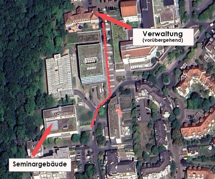 Die Verwaltung der Akademie zieht vorübergehend in den Räumlichkeiten in der Kindertagesstätte am Hochwald ein und ist somit in unmittelbarer Nähe untergebracht (in Sichtweite, zumindest wenn der Wald kein Laub trägt!). So ist die optimale Betreuung und Unterstützung der Teilnehmer und Referenten weiterhin sehr gut gewährleistet.