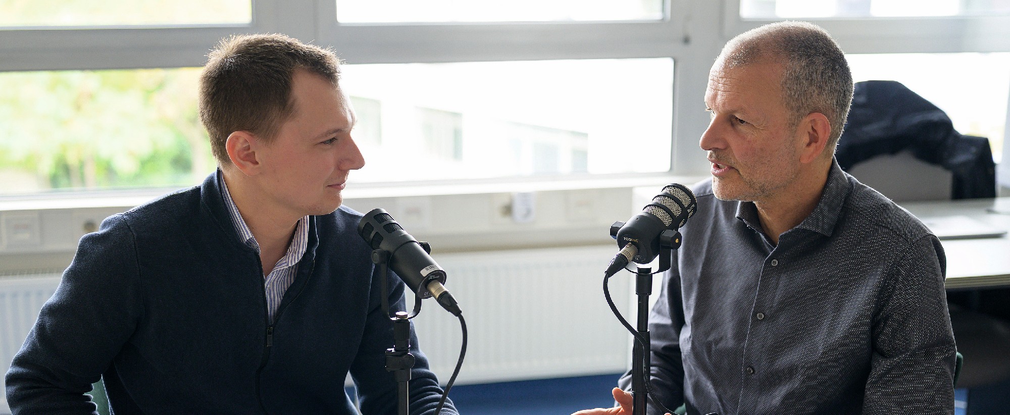 Philipp Martens: Bei dem Projekt, das wir hier zur Suizidprävention in der stationären Langzeitpflege haben, haben wir erkannt, dass es schwierig ist, viele Menschen gleichzeitig zu erreichen. Auch ist es für Gesundheitseinrichtungen schwierig, langfristig ein gewisses Wissensmanagement zu erhalten. Wenn zum Beispiel geschulte Leute wieder abwandern. Wir haben überlegt, welches Format ist sinnvoll, um das Thema einfacher im Arbeitsalltag erlebbar zu machen. Da sind wir relativ schnell auf die Idee mit dem Podcast gekommen.