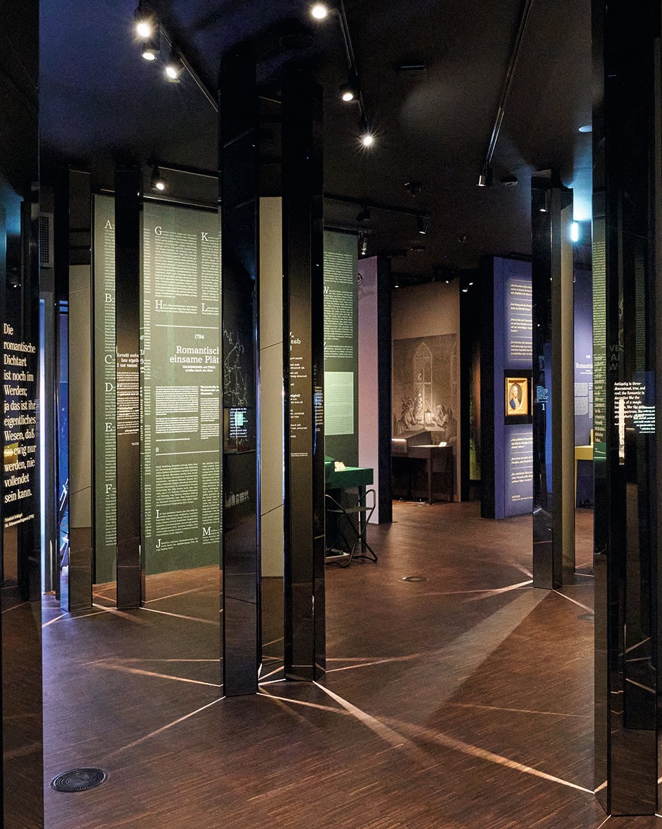 Die Dauerausstellung „Romantik“ erzählt ihre Geschichte nicht chronologisch, sondern thematisch und sinnlich. Auf zwei Ebenen, in 35 Stationen, begegnen Besucherinnen und Besucher Handschriften, Gemälden sowie raumbezogenen, multimedialen Inszenierungen, die unterschiedliche Facetten der Epoche erfahrbar machen.