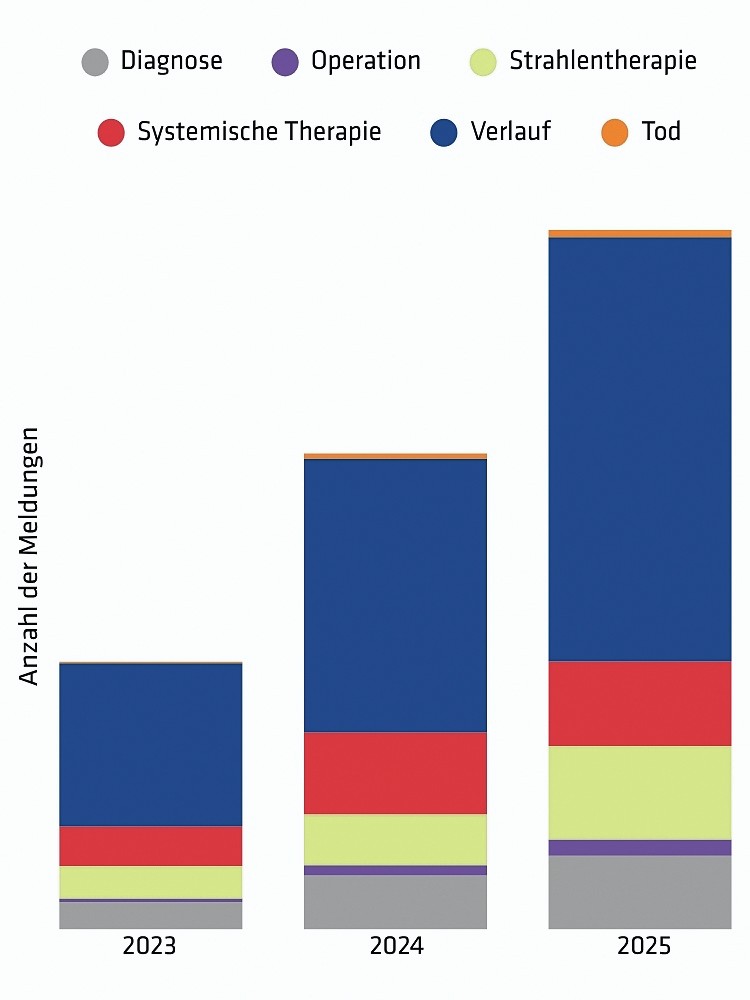 Zum Abschluss des Fördervorhabens zeigen die Krebsregisterdaten einen deutlichen Fortschritt beim Anschluss des ambulanten Sektors. Die Zahl der registrierten Praxen stieg um 116 %. Obwohl nicht alle Meldestellen über ihr Praxissystem melden (können) und deshalb die Online-Erfassung im Meldeportal nutzen, verzeichnet das Krebsregister im Vergleich zu 2023 für das Jahr 2024 einen Meldungsanstieg um 78 % und für das Jahr 2025 um 161 %.