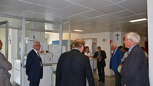 Um sich vor Ort ein Bild von der stationären Krankenversorgung zu machen, besichtigten die Gäste aus Hessen am Nachmittag die kardiologische Abteilung des Universitätsklinikums von Salerno, die viele Jahre unter der Leitung von Dott. Ravera gestanden hatte. Die 1968 gegründete Universität Salerno (italienisch: Università degli Studi di Salerno, UNISA, lateinisch: Hippocratica Civitas Studium Salerni) zählt zu den jüngeren Universitäten Italiens. Mit der Fakultät für Medizin und Chirurgie geht ihre Tradition allerdings auf die Schule von Salerno (Schola Medica Salernitana) zurück, eine bedeutende mittelalterliche medizinische Lehr- und Forschungsanstalt.